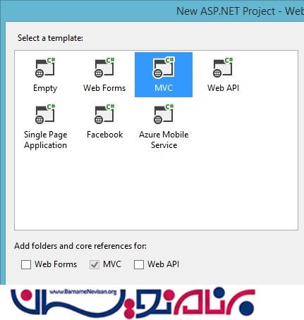 مرحله اول : ابتدا یک Asp.Net MVC application با استفاده از MVC template ایجاد کنید که در شکل زیر مشاهده می کنید :