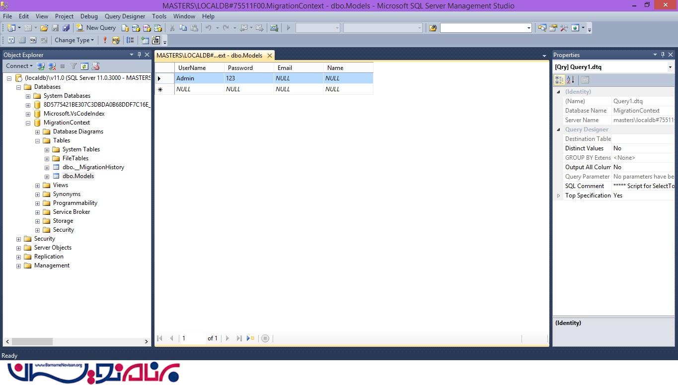 بعد از اجرای موفقیت آمیز عملیات Migration در صورتی که پروژه را دوباره اجرا کنیم و دیتابیس را باز کنیم در جدول مورد نظر را مشاهده می کنیم تغییرات انجام شده است.ضمن اینکه مقادیر داخل جدول در دیتابیس حفظ می شود.