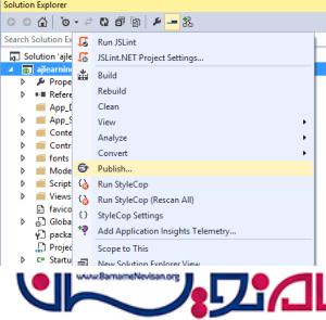 به Visual Studio باز گردید و روی برنامه وب خود کلیک راست کرده و گزینه Publish را انتخاب کنید.