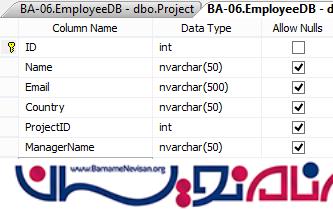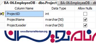 برای ادامه کار ما یک جدول با نام Employee و جدول دیگری با نام Project داریم. این دو جدول با هم ارتباط دارند. یعنی اگر بخواهیم یک مورد جدید به جدول Employee اضافه کنیم در ابتدا باید رکوردهایی را در جدول Project درج کنیم. به عبارت دیگر پر کردن فیلدهای جدول Project وابسته به پر کردن فیلدهای جدول Employee است.