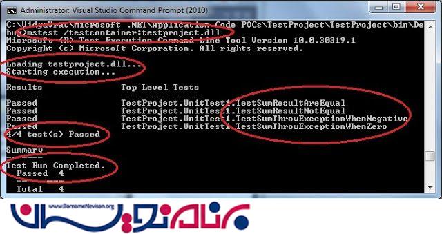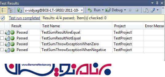 پروژه ای در Visual Studio ایجاد کرده و آن را اجرا کنید . در آغاز اجرا همه TestMethods ها را مشاهده خواهید کرد . نتیجه به این صورت می باشد :