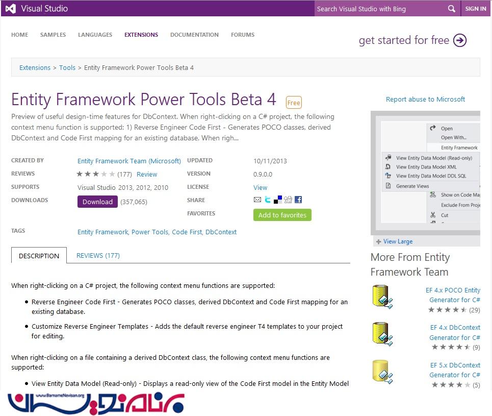 سپس ابزار Entity Framework Power Tools Beta 4 را از اینجا دانلود نمایید و آن را Install کنید.