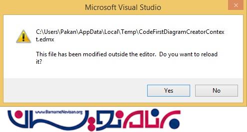 لازم به ذکر است که اگر تغییری روی مدل خود انجام دهید با کلیک مجدد روی گزینه View Entity Data - Read Only دیاگرام جدید ساخته می شود البته قبل از ساخت از شما مطابق شکل پرسیده می شود :