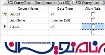 برای گرفتن اطلاعات جدول Mas_Department یک پروسیجر به نام USP_Select_Mas_Department ایجاد کرده ایم. شما می توانید از نام دلخواه استفاده کنید.
