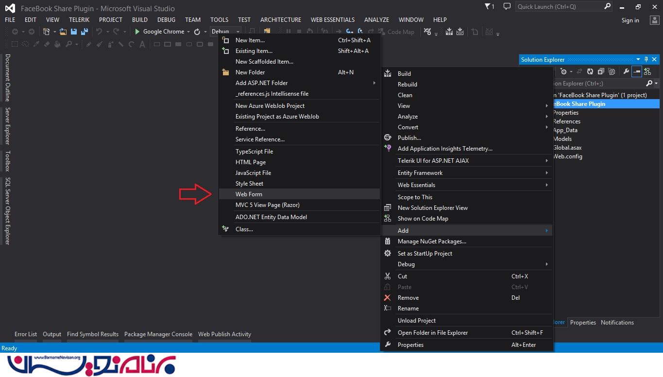 در پروژه یک WebForm جدید اضافه میکنیم.