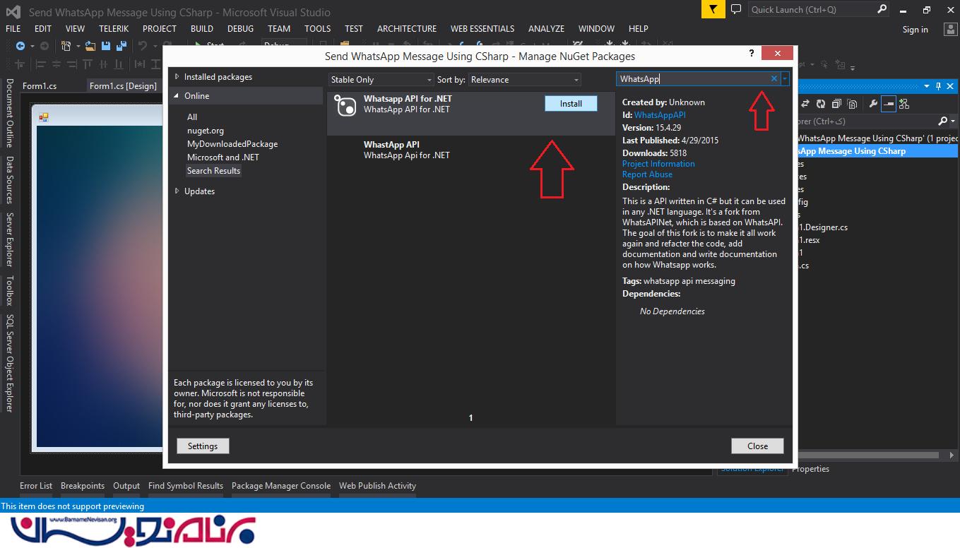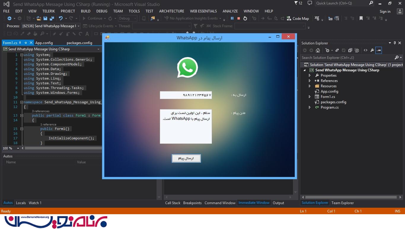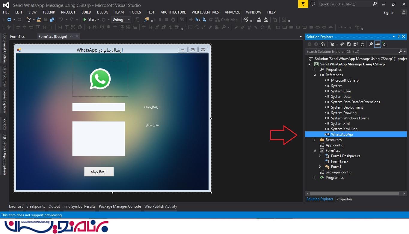حالا اقدام به استفاده از این کتابخانه برای ارسال و پیام از طریق WhatsApp در سی شارپ را انجام می دهیم.
