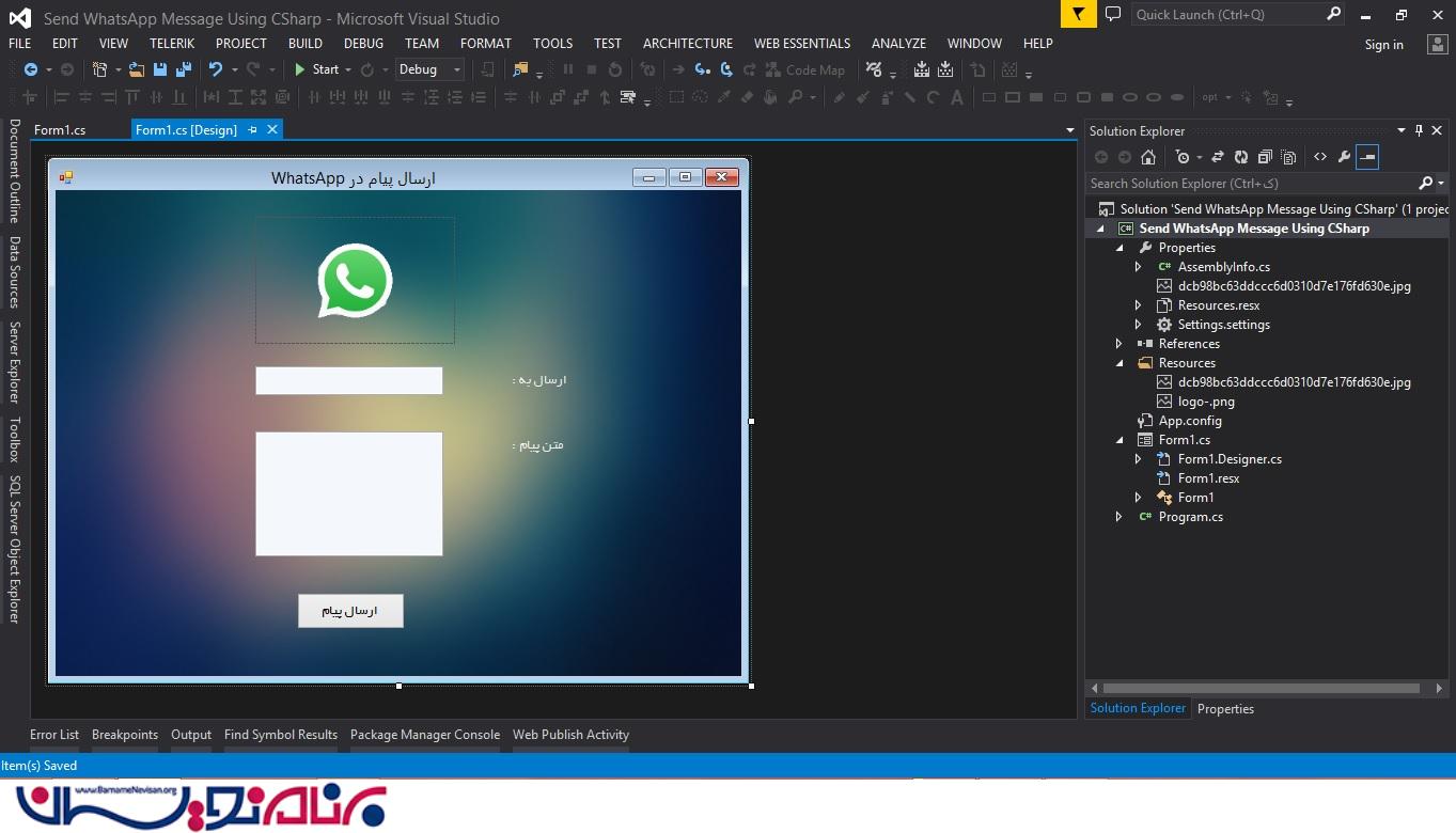 سه شنبه 27 مرداد 1394در این مقاله با چگونگی ارسال پیام در WhatsApp توسط زبان سی شارپ آشنا خواهید شد دقت داشته باشد از این نمونه کد می توان در Asp.Net ، WPF و سایر زبان های تکنولوژی های تحت .Net استفاده کرد.