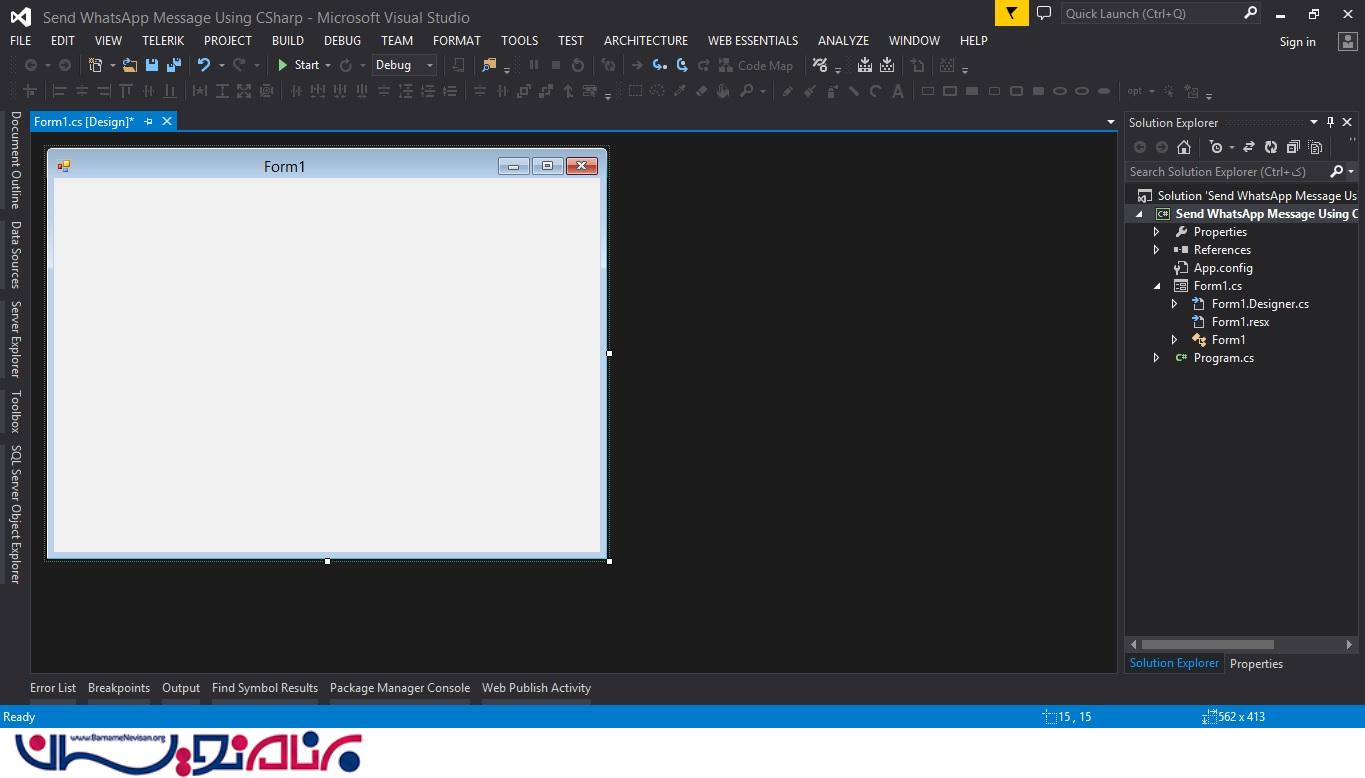 در ابتدا اقدام به ایجاد یک پروژه Windows Form Application در Visual Studio با زبان C# می کنیم.