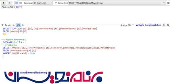 همانطور که در تصویر زیر میبینید، در پشت صحنه آن، دستورات واقعی SQL تولید شده است.