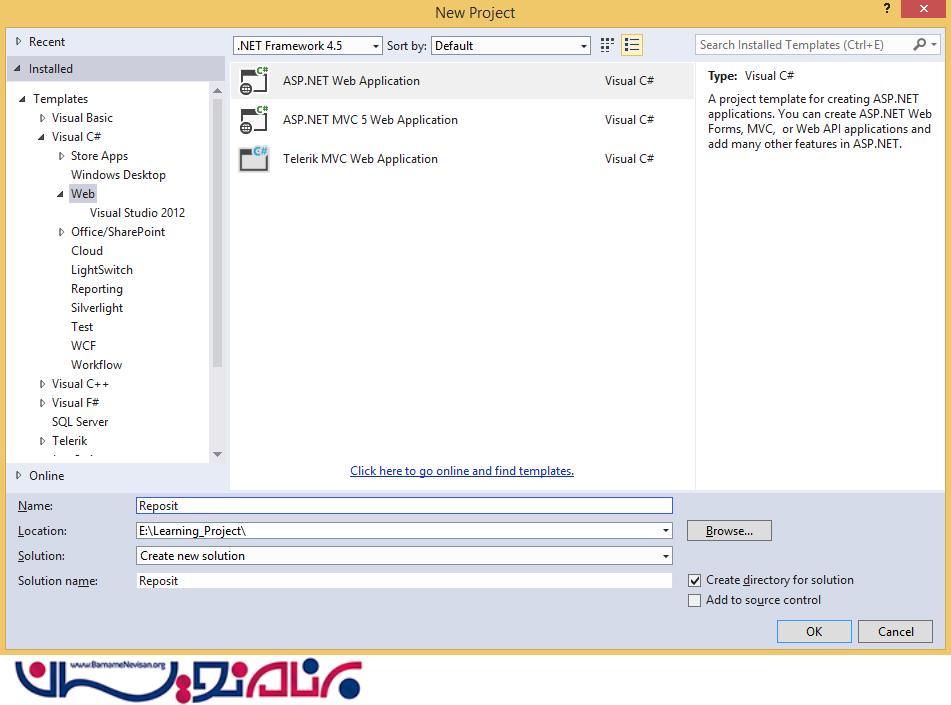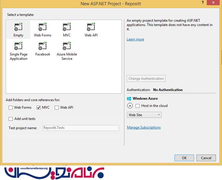 ویژوال استادیو را باز کرده و یک پروژه از نوع MVC ایجاد نمایید.