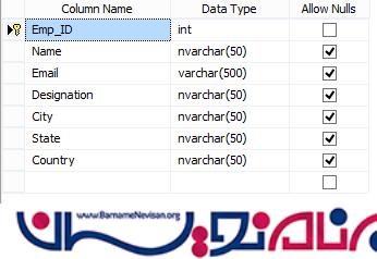 یک بانک اطلاعاتی بانام EmployeeManagement ساخته و جدولی با نام Employee با فیلدهای زیر بسازید.
