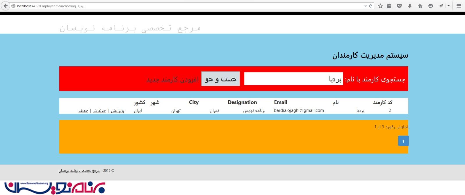 جستجوی کارمند با نام: @Html.TextBox("SearchString", ViewBag.CurrentFilter as string)