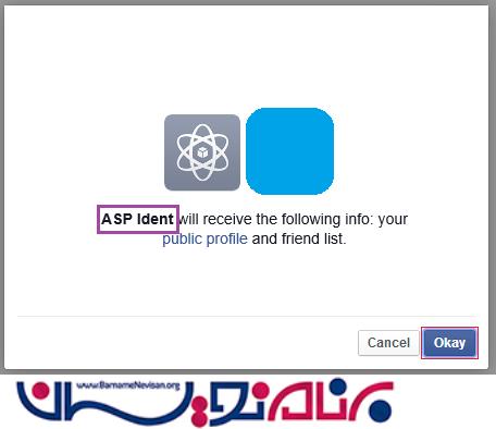 دقت داشته باشید کادر بنفش نشان دهنده نام Application است که در Facebook ایجاد کردیم.