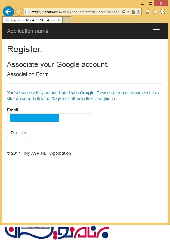 دوباره به صفحه register هدایت می شویم و با ایمیل ثبت نام تکمیل می شود.