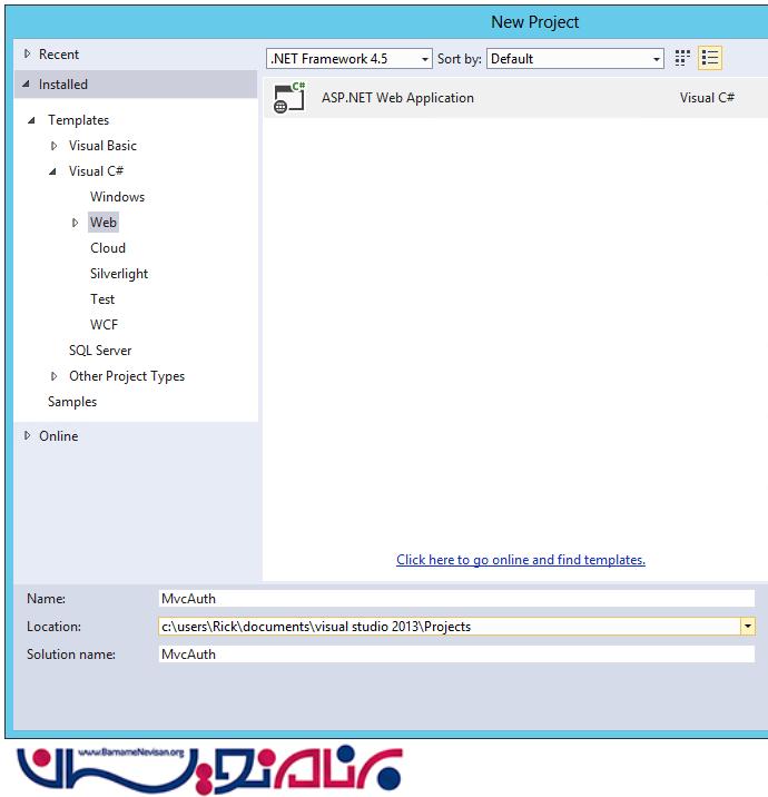 در ابتدا پروژه ای به نام MvcAuth ایجاد می کنیم برای این کار از Visual Studio 2013 و زبان C# استفاده می کنیم.