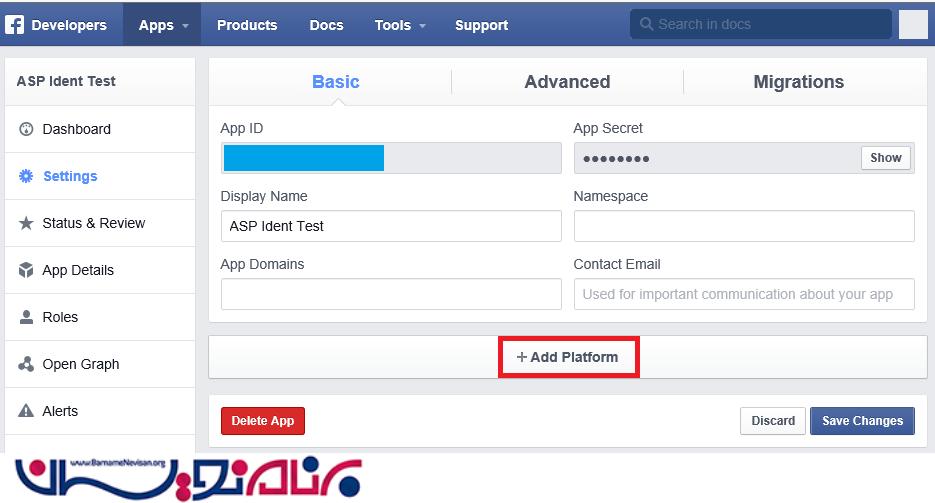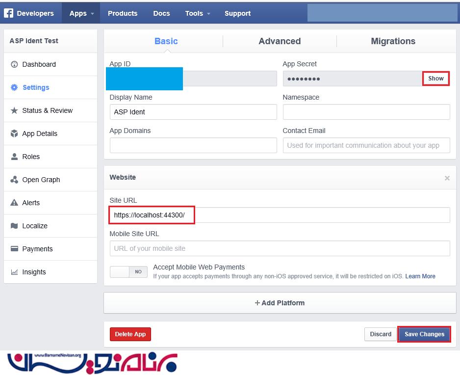 و مقدار AppId و AppSecret را قرار میدهیم.