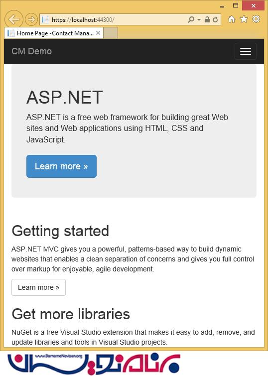 سپس در تصویر زیر اجرای برنامه در IE را مشاهده می کنید.