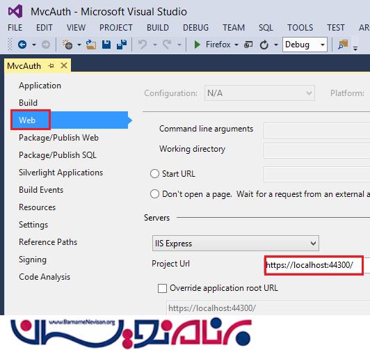 Authorized JavaScript را برروی SSL URL پروژه خود قرار می دهیم. (https://localhost:44300)