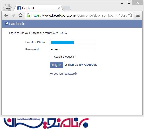 با زدن Log In و انتخاب آن Facebook در صفحه بعدی اقدام به گرفتن تایید از ما میکند.