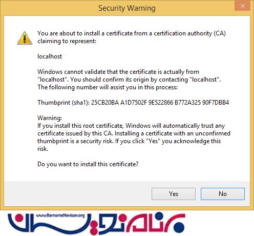 سپس مشاهده می کنید که پیغام دیگری مشاهده می کنید با کلیک بر روی Yes ادامه می دهیم.