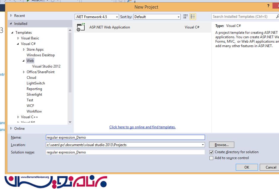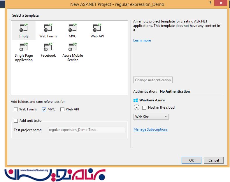 برای شروع ابتدا ویژوال استادیو را باز کرده و یک پروژه از نوع MVC ایجاد میکنیم.
