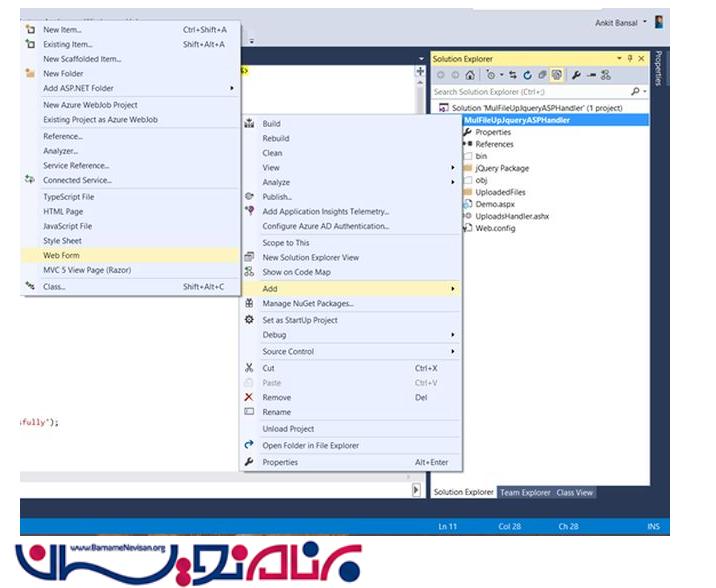 حال در این مرحله روی پروژه راست کلیک کرده و در Add>webForm را انتخاب میکنیم.