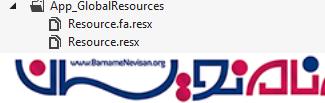 زمانی که هر دو فایل به پروژه اضافه شوند، فولدر App_GlobalResources به شکل زیر درمی آید.