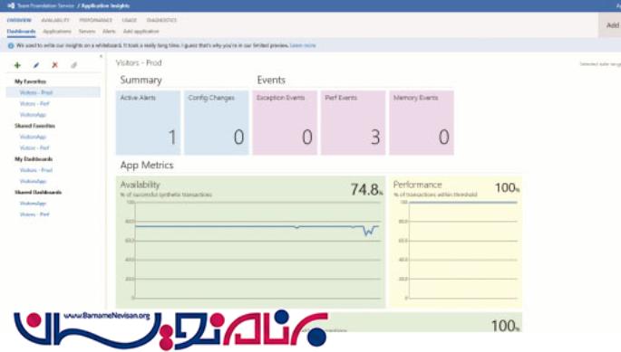 دانستن اینکه سایت شما در حال حاضر در دسترس است، بسیار عالی است. دانستن اینکه کدام خط از کد یا Stored Procedure باعث کند شدن برنامه می شود، بهتر است. امکان دسترسی مستقیم از سرویس Performance-monitoring به خط کدی از IDE شما بسیار جالب است. Application insight همه برنامه های وابسته شما را بررسی کرده و 10 قسمت از کندترین قسمت های برنامه کاربردی را به شما نشان می دهد.