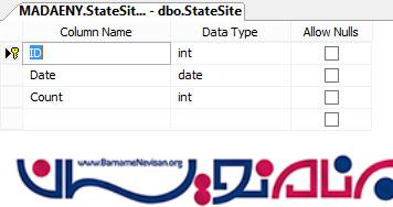 ابتدا یک DataBase با نام StateSite_MVC_DB ایجاد میکنیم و جدول زیر را در آن ایجاد میکنیم
