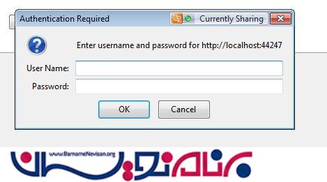 3. این، احراز هویت ویندوز شما را فعال می کند. بنابراین زمانی که سعی می کنید، از طریق URL به متدی دسترسی پیدا کنید. یک پنجره احراز هویت مانند شکل زیر نشان داده خواهد شد.