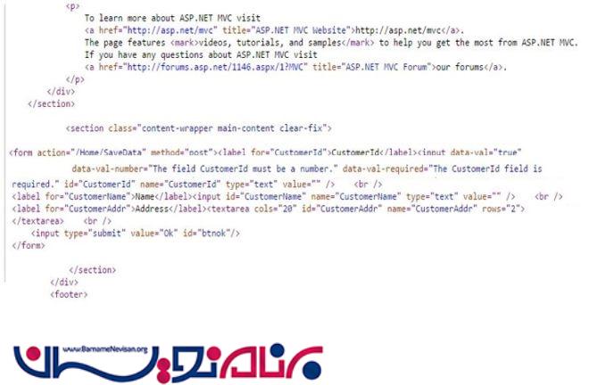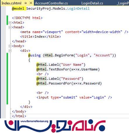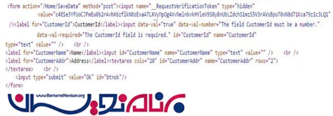 اما اگر Razor View Engine را بازگردانیم به صورت اتوماتیک به وسیله ی متد Html helper برای نوع ورودی رمزگذاری می شود.
