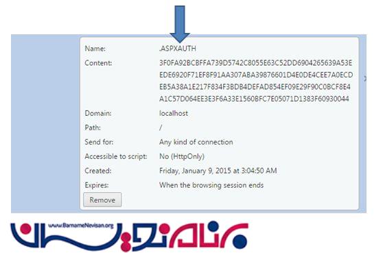 اگر شما می خواهید کوکی هایی که توسط فراخوانی FormsAuthentication.SetAuthCookie ایجاد می شوند را بررسی کنید، می توانید از متد ASPXAUTH که در زیر نشان داده شده است استفاده کنید