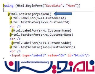 1.متد Htmlhelper را در تگ فرم به شکل @Html.AntiForgeryToken().