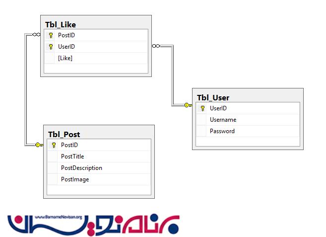 جداول زیر را برای اینکار در نظر گرفته ایم ، توجه داشته باشید جداول شما با توجه به هدف سیستم پیاده سازی می شوند در این مقاله ما به حداقل مواردی که در برنامه نیاز است بسنده می کنیم.