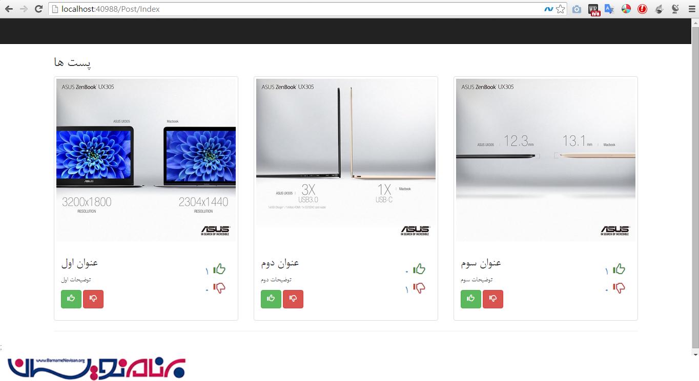 حالا در تصویر زیر بعد از ورود به سایت می توانید پست های ایجاد شده را Like یا Dislike کنید.