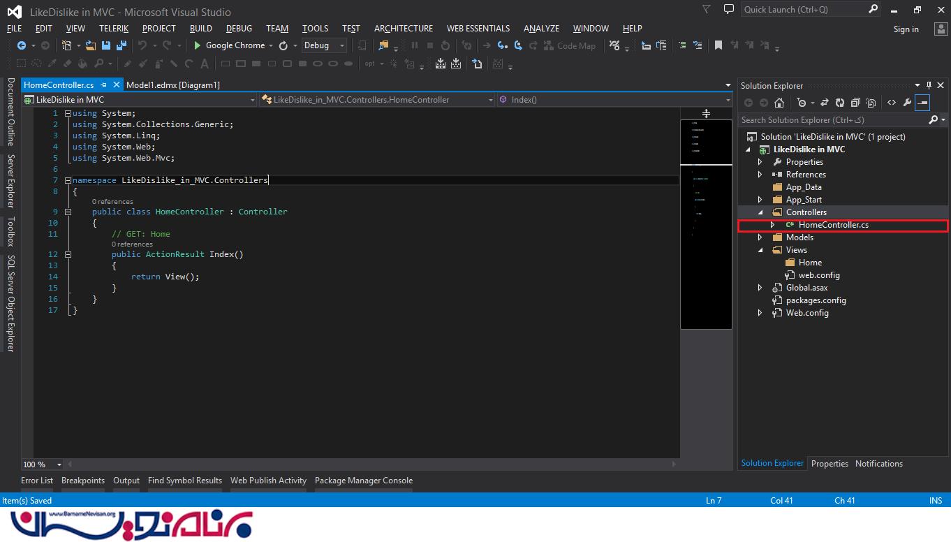همچنین نیاز به یک اکشن برای بارگذاری PartialView و دو اکشن برای Like و Disslike نیاز داریم که به صورت ایجکس فراخوانی می شوند و خروجی آن ها برابر یک Partial View است که در زیر هر محصول Load می شود.کد زیر کنترلر ما را نشان می دهد.