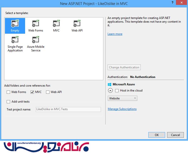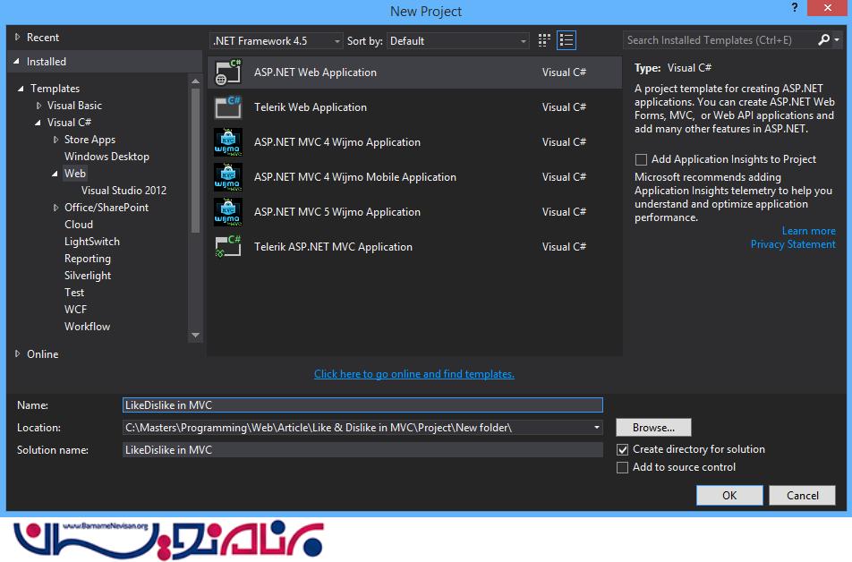حالا اقدام به ایجاد پروژه ای جدید از نوع Asp.Net MVC و با زبان C# می کنیم.
