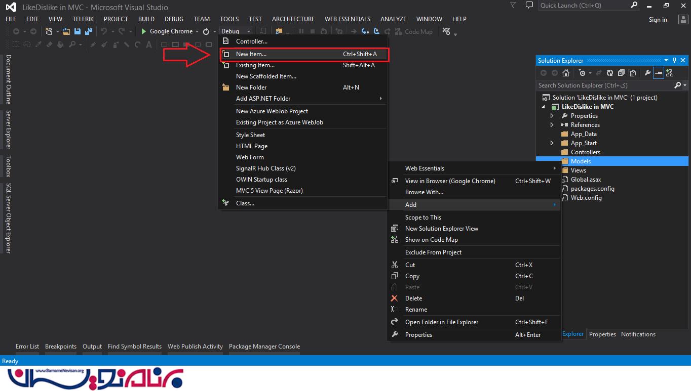 سپس اقدام به افزودن مدل در پروژه برای برقراری ارتباط با دیتابیس می کنیم.