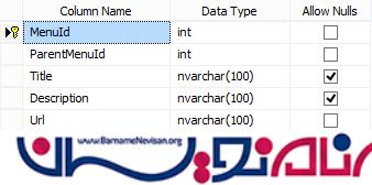 طبق الگوی زیر یک جدول در بانک اطلاعاتی به نام Menus می سازیم.