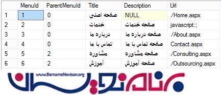 پر کردن کنترل ASP.Net Menu از بانک اطلاعاتی