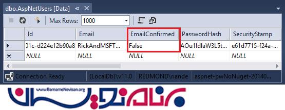 در این مرحله ایمیل تایید نشده و برابر False می باشد.