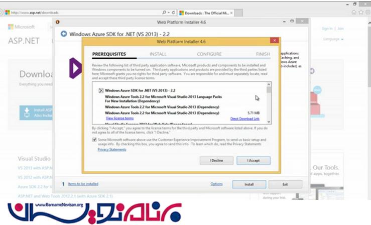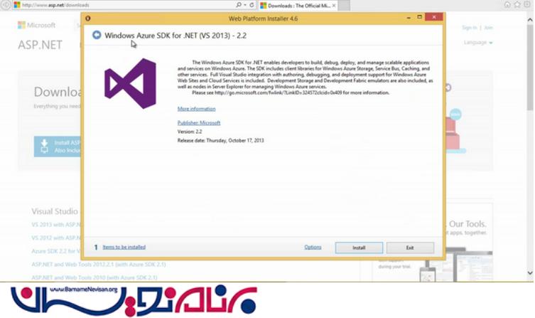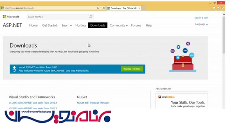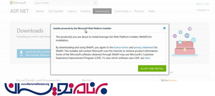 آن ها را از طریق برنامه ای که web platform installer می نامیم نصب می کنیم. شما می توانید این برنامه را به طور رایگان از طریق وب سایت asp.net و کلیک بر روی تب دانلود و سپس دکمه سبز رنگ Install Now دریافت و نصب نمایید.