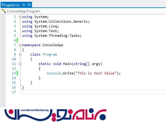 در C# 6.0 می توانیم به طور مستقیم متدConsole را فراخوانی کنیم . ابتدا نیاز داریم تا کلاس static را به usings اضافه کنیم که در این مثال، کلاس ما Console است.