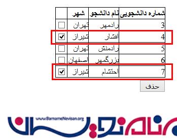 فرض کنید می خواهیم، سطرهای انتخاب شده را حذف نماییم.