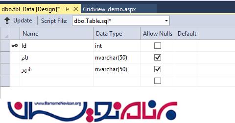 فایل Gridview_demo.aspx.cs را باز کرده و کدهای زیر را در آن می نویسیم: