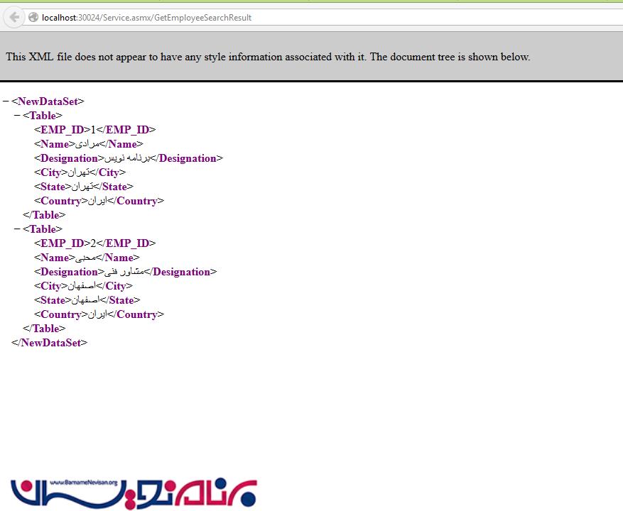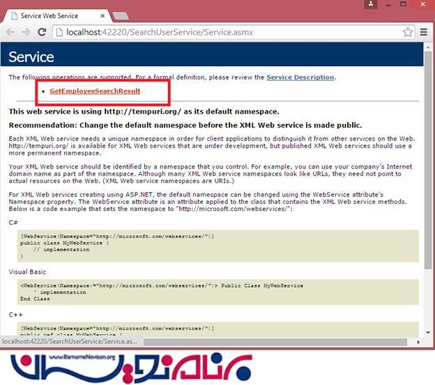 سپس Service.cs را باز کرده و WebMethod آن را به شکل زیر می نویسیم: