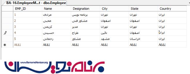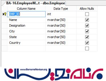 حال می خواهیم ببینیم، چگونه می توان در # ASP.Net C یک وب سرویس ساخت و از آن استفاده کرد. شکل زیر جدولی را که می خواهیم با استفاده از وب سرویس از آن داده ها را واکشی کنیم، در حالت Design نشان می دهد.