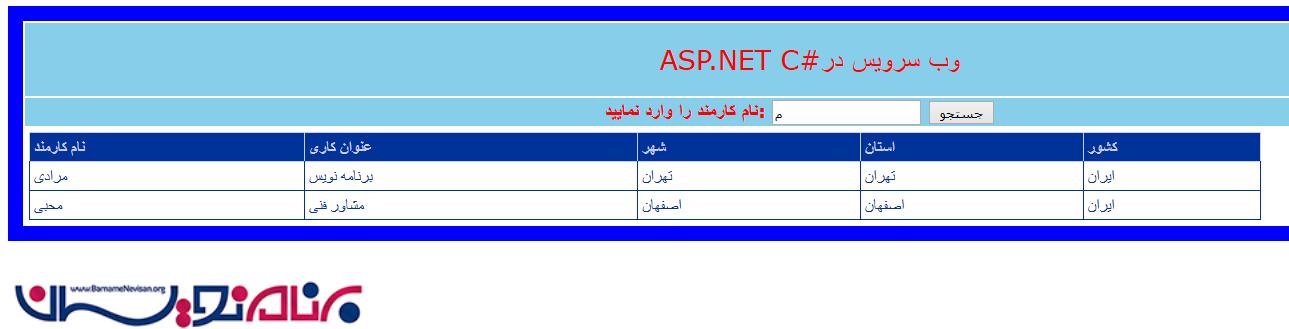 نتیجه جستجوی ما بر اساس دیتابیس ساخته شده، به شکل زیر خواهد بود: