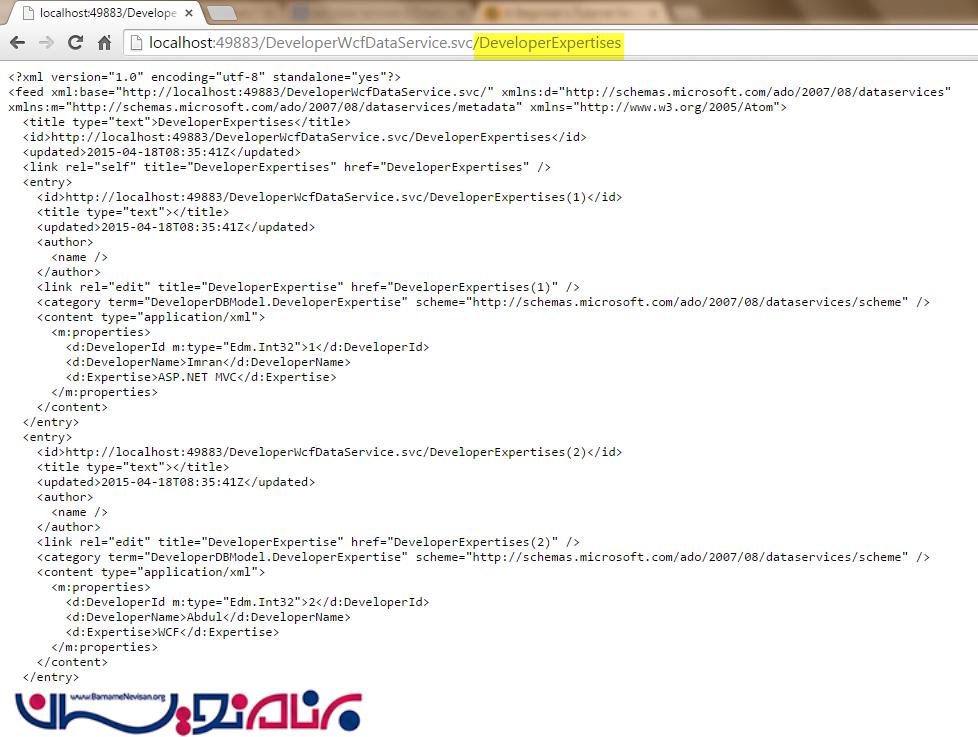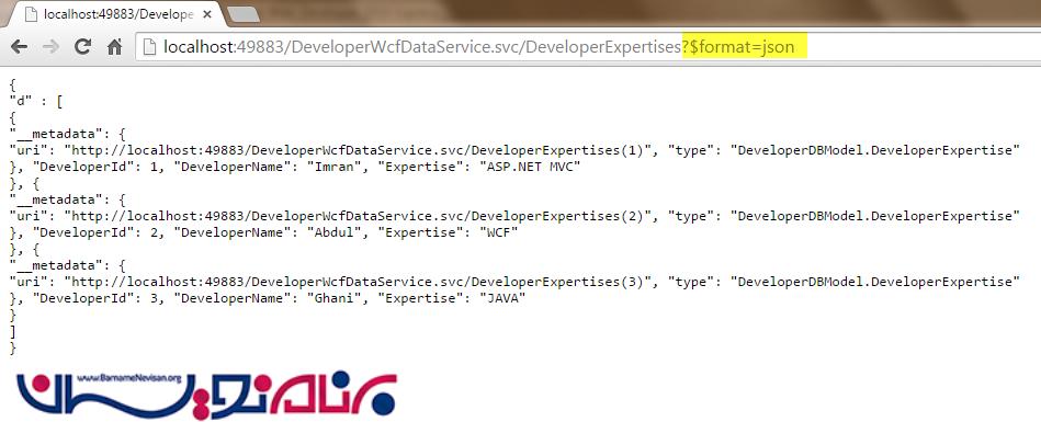 بسیار عالی! ما توانسیتم یک WCF Data Service ایجاد کرده و از آن استفاده نماییم.