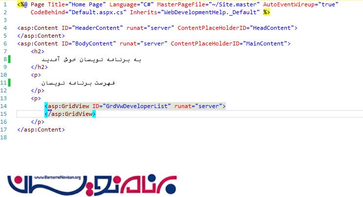 صفحه Default.aspx را باز کرده و یک GridView می سازیم.